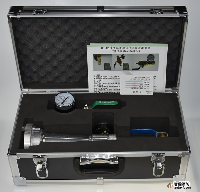 水噴淋末端試水街頭是用于模擬一支噴頭開放,進行滅火功能試驗,噴嘴流量系數:K﹦80,壓力表量程:0-0.4Mpa,精度:2.5級,接頭連接螺紋:ZG1〝