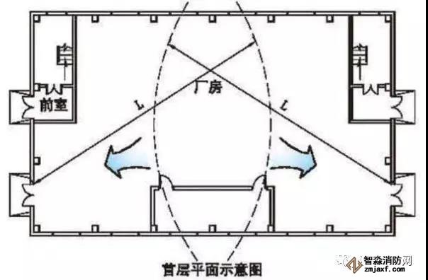 (《建規》圖示3.7.4沒考慮隔間墻體遮擋的影響,不妥)