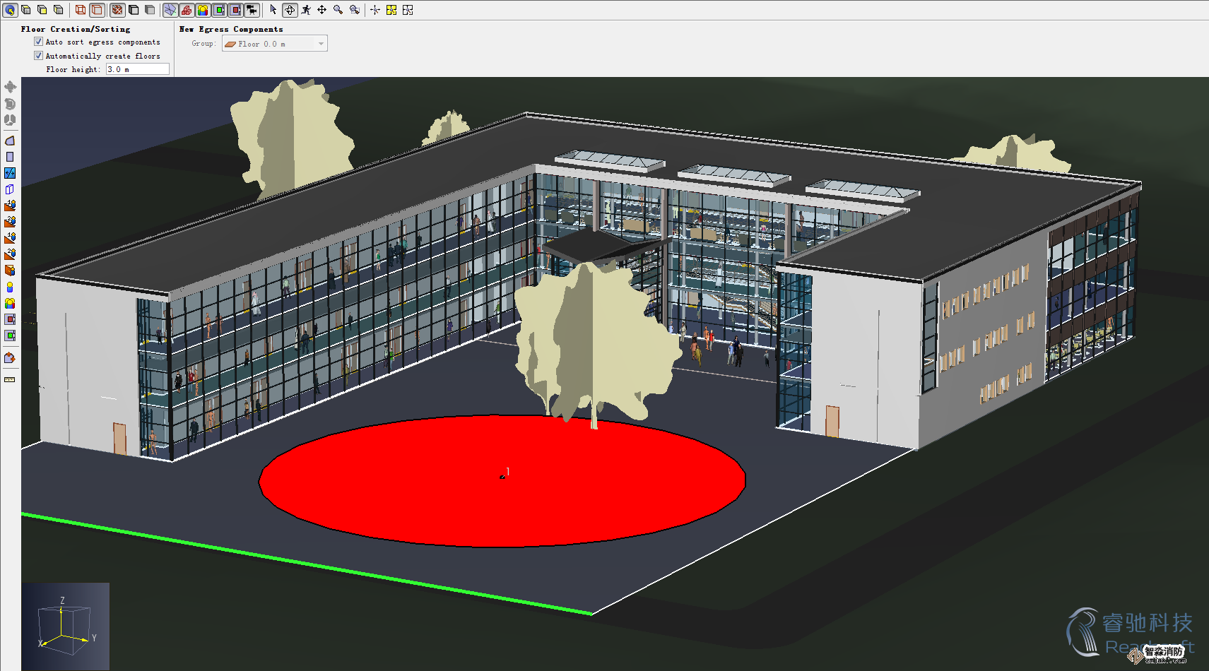 Pathfinder是一個人物為基礎的模擬器,通過定義每一個人員的各種參數(人員數量,行走速度,以及距離出口的距離)來實現模擬過程中的各自獨特的逃生路徑和時間模擬。可以模擬災難條件下人員的疏散路徑,不同區域的人員的疏散時間。可以定義:某區域的人員的密度、人員距離出口的至近距離、人員走路的速度、支持內部建模、CAD文件的導入、FDS文件的導入。