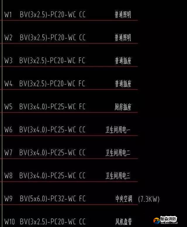 現在的房子設計已經將回路分配得很好,用電較大的基本使用單獨回路!圖中是某知名地產在某城市的室內配電系統設計!家庭裝修中,用線大小可以參考一下!